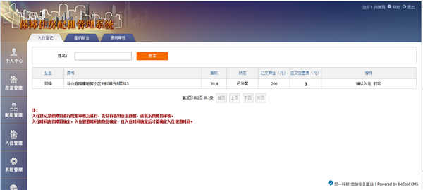 “入住管理”页面