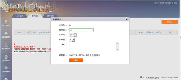 ”缴纳租金“操作界面
