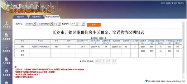 统计分析中包含以小区和业主为主线的租金和空置费统计功能。
