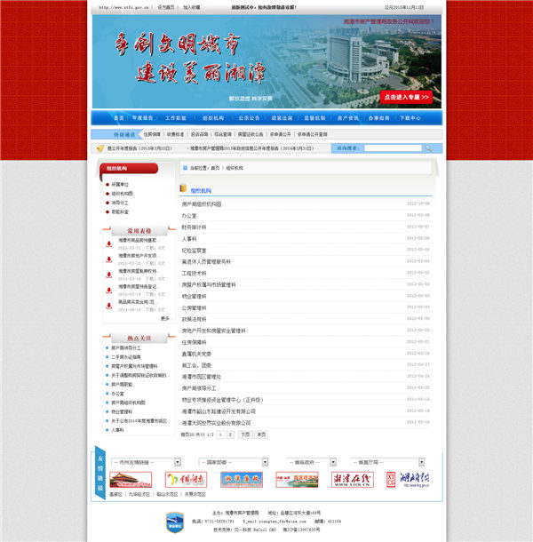 关键字:湘潭市房产管理局政务公开网站,PC版,新闻系统,留言簿,投票系统,网站建设,湘潭市房产管理局