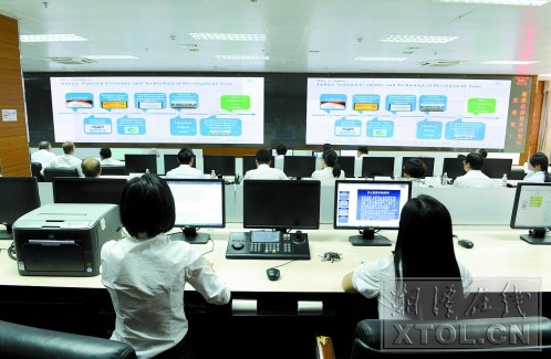 走进湘潭经开区综合服务中心,首先映入眼帘的是一面墙大小的LED显示屏。工作人员告诉我们,这块大屏幕由多个城区电子监控视频组成。透过它,辖区内每个角落的点点滴滴都能尽收眼底。
