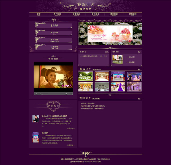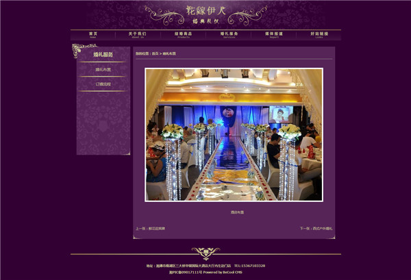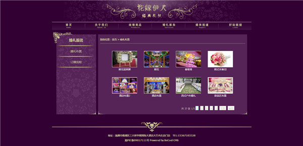 该网站的主要栏目有:关于我们、结婚商品、婚礼服务、媒体报道和好站链接。