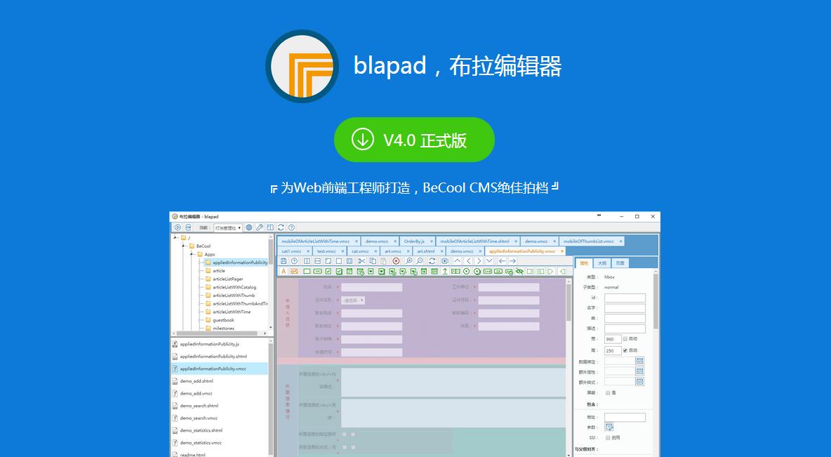 blapad - 布拉编辑器是 BeCool CMS 小助手的前身。