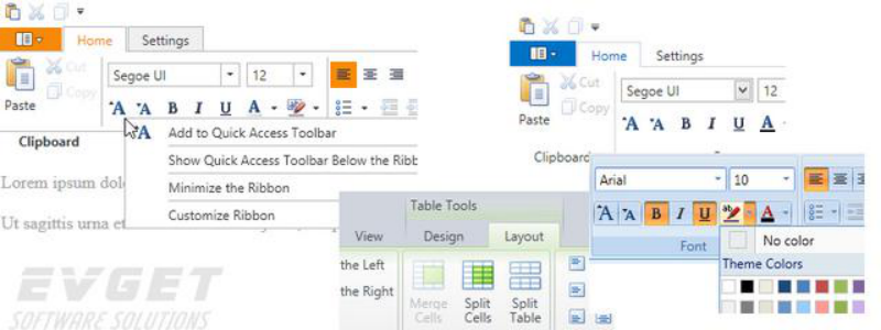 DXRibbon for WPF集成了几个Ribbon Bar UI控件:应用菜单、图集、状态栏等等。目前支持Microsoft Office2007, 2010 和 2013样式。