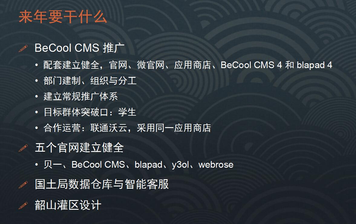 展望2017年:2017年是公司的第十周年,也是我们转型元年,这一年的工作提要如下图: