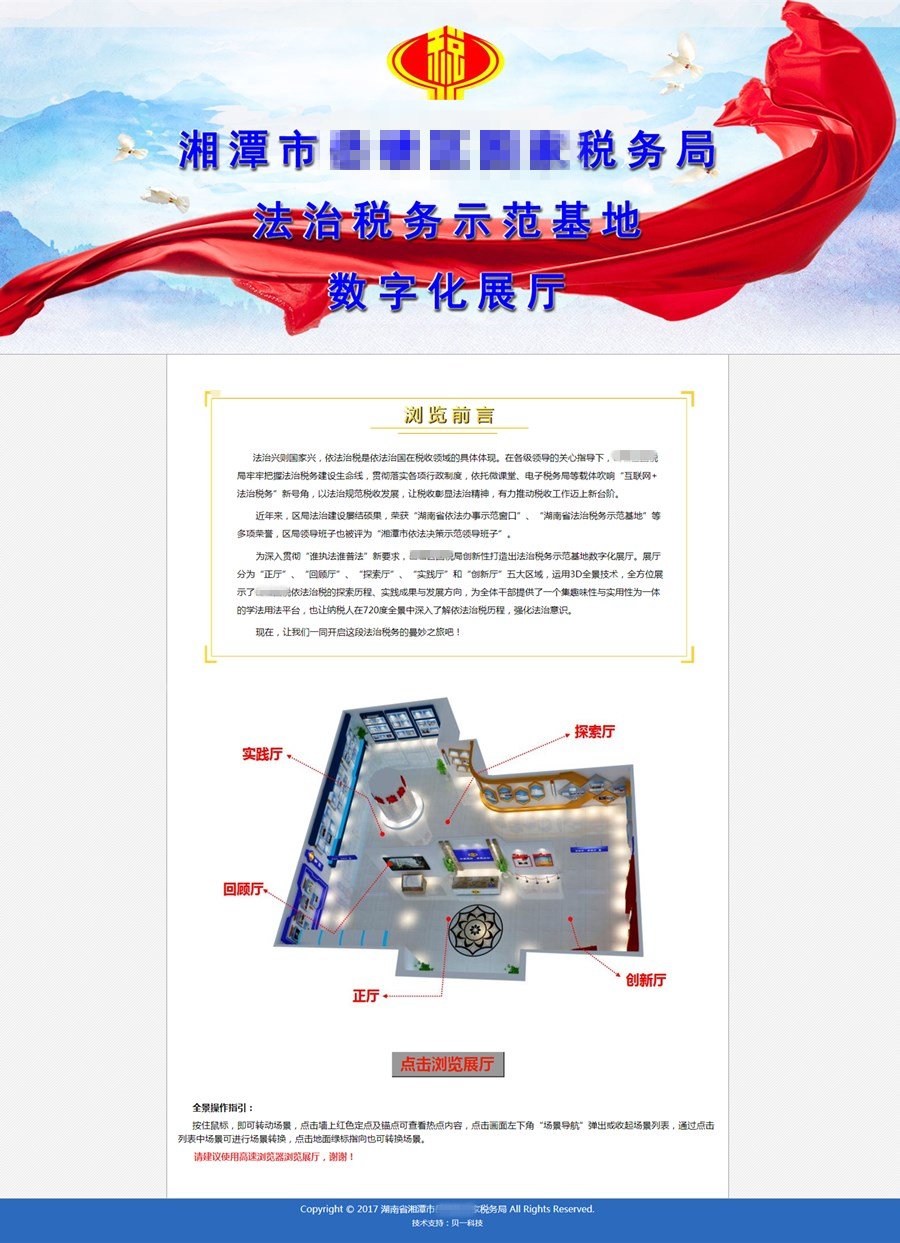 为深入贯彻“谁执法谁普法”新要求,XXX国税局创新性打造出法治税务示范基地数字化展厅。展厅分为“正厅”、“回顾厅”、“探索厅”、“实践厅”和“创新厅”五大区域,运用3D全景技术,全方位展示了XXX国税依法治税的探索历程、实践成果与发展方向,为全体干部提供了一个集趣味性与实用性为一体的学法用法平台,也让纳税人在720度全景中深入了解依法治税历程,强化法治意识。