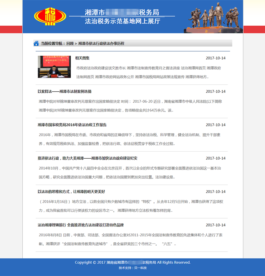 近年来,区局法治建设屡结硕果,荣获“湖南省依法办事示范窗口”、“湖南省法治税务示范基地”等多项荣誉,区局领导班子也被评为“湘潭市依法决策示范领导班子”。