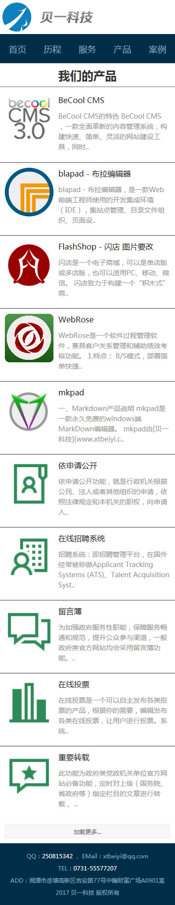 贝一科技微官网产品列表页效果图